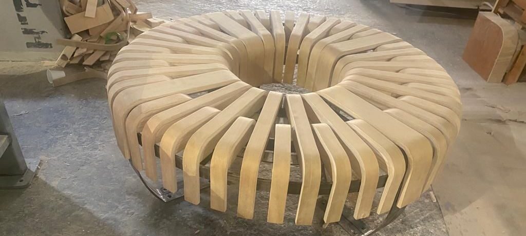 Jugaad Engineering successfully executed the fabrication and installation of a round steel frame integrated across a tree, fitted with wooden slats to create a functional yet elegant public seating feature. This project was designed to blend nature with engineering, offering a sustainable and community-friendly solution that enhances outdoor spaces. The combination of robust steel support and natural wooden finishes ensured both structural integrity and aesthetic warmth, reflecting our ability to merge durability with design.